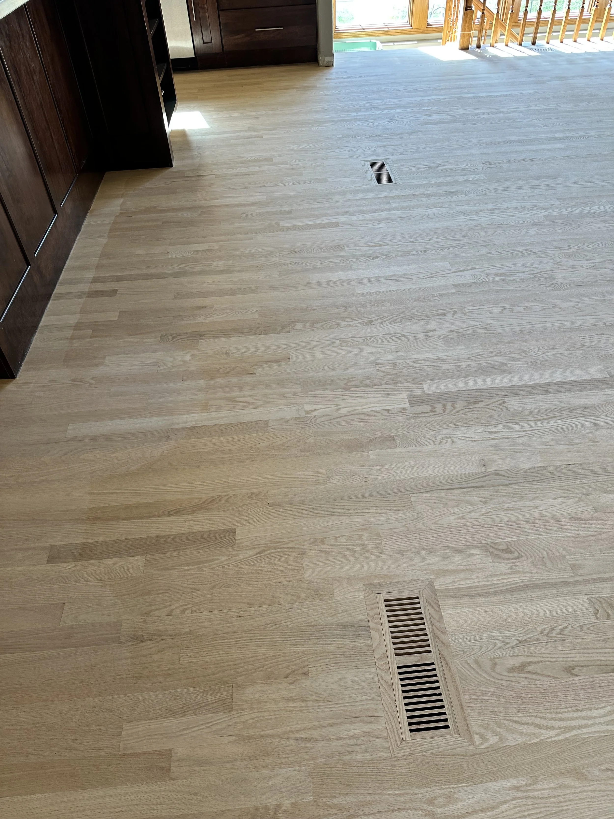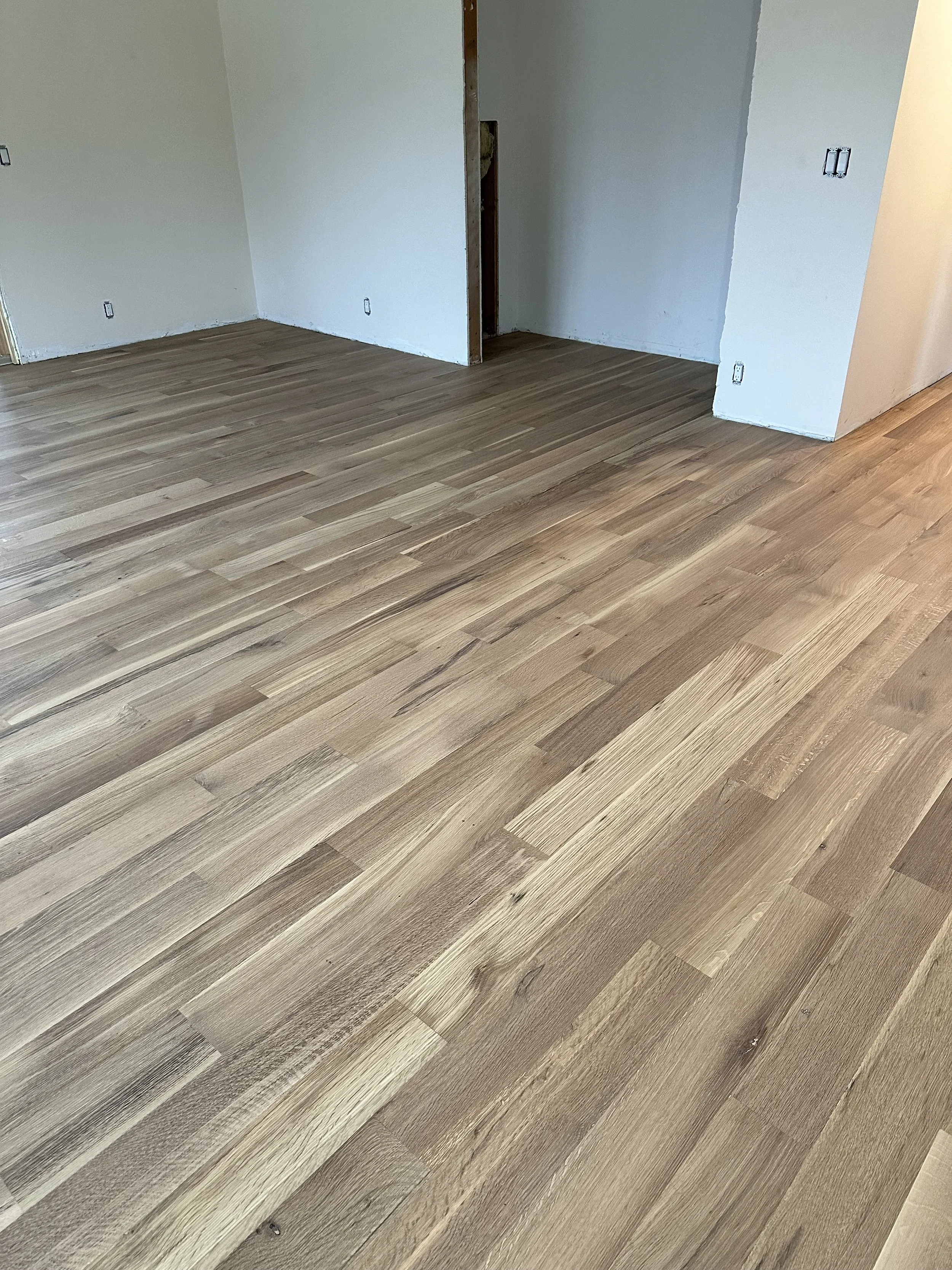 Room with new white oak hardwood flooring installed.